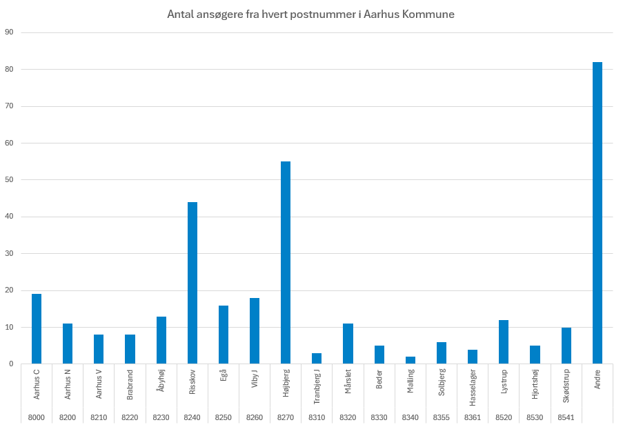 Antal ansøgere pr. postnummer i Aarhus Kommune: